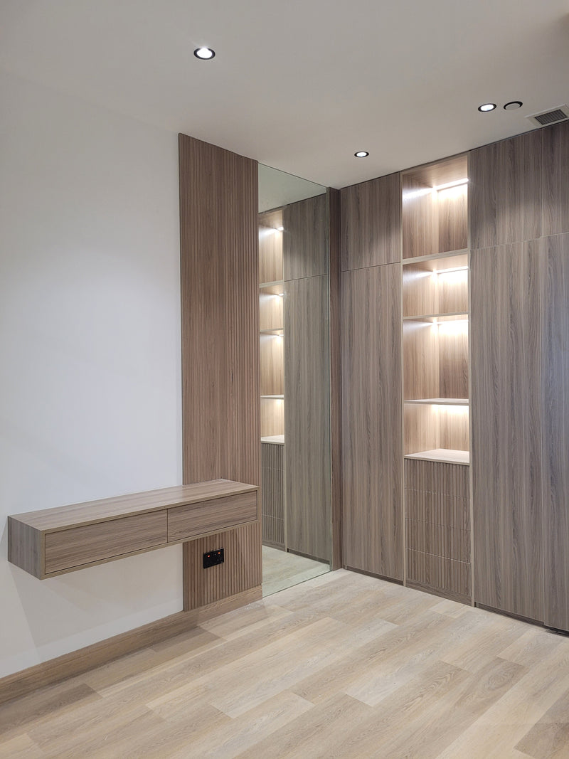 We design and install custom wardrobes in Dubai tailored to your space, storage needs, and interior style. Our carpentry team builds fitted wardrobes, sliding wardrobes, and walk-in closets with premium finishes.